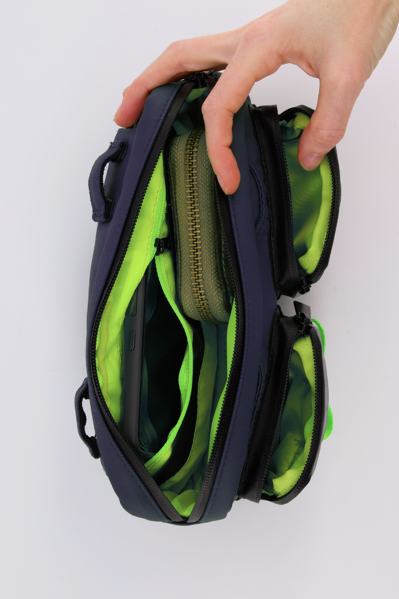 Waterdicht en ultra-praktisch, bescherm uw spullen ongeacht de weersomstandigheden. Met zijn 3 ritszakken biedt deze ruime tas de mogelijkheid om uw dagelijkse benodigdheden efficiënt te organiseren en op te bergen. De openingen en geïntegreerde banden zijn ideaal om uw sleutels, sloten of andere accessoires vast te maken.