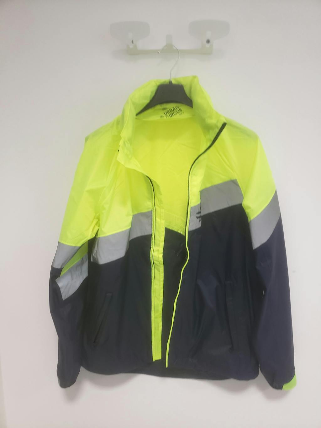 coupe vent vélo jaune fluo compact rangement banane coupe vent léger haute visibilité vélotaf coupe vent jaune fluo bleu marine vélo coupe vent jaune fluo repliable banane  urban circus coupe vent équipement vélotaf