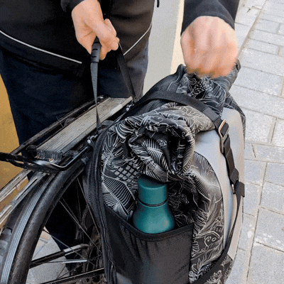 Le mécanisme repose sur une poignée intelligente : il suffit de tirer sur l'anse pour ouvrir les crochets. Posez la sacoche sur votre porte-bagages, relâchez la poignée, et les crochets se ferment automatiquement. Pour la retirer ? Tirez à nouveau sur l’anse et repartez avec votre sacoche en une seconde.