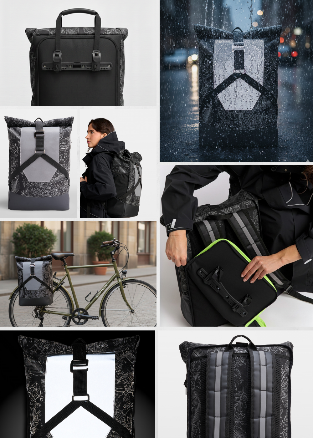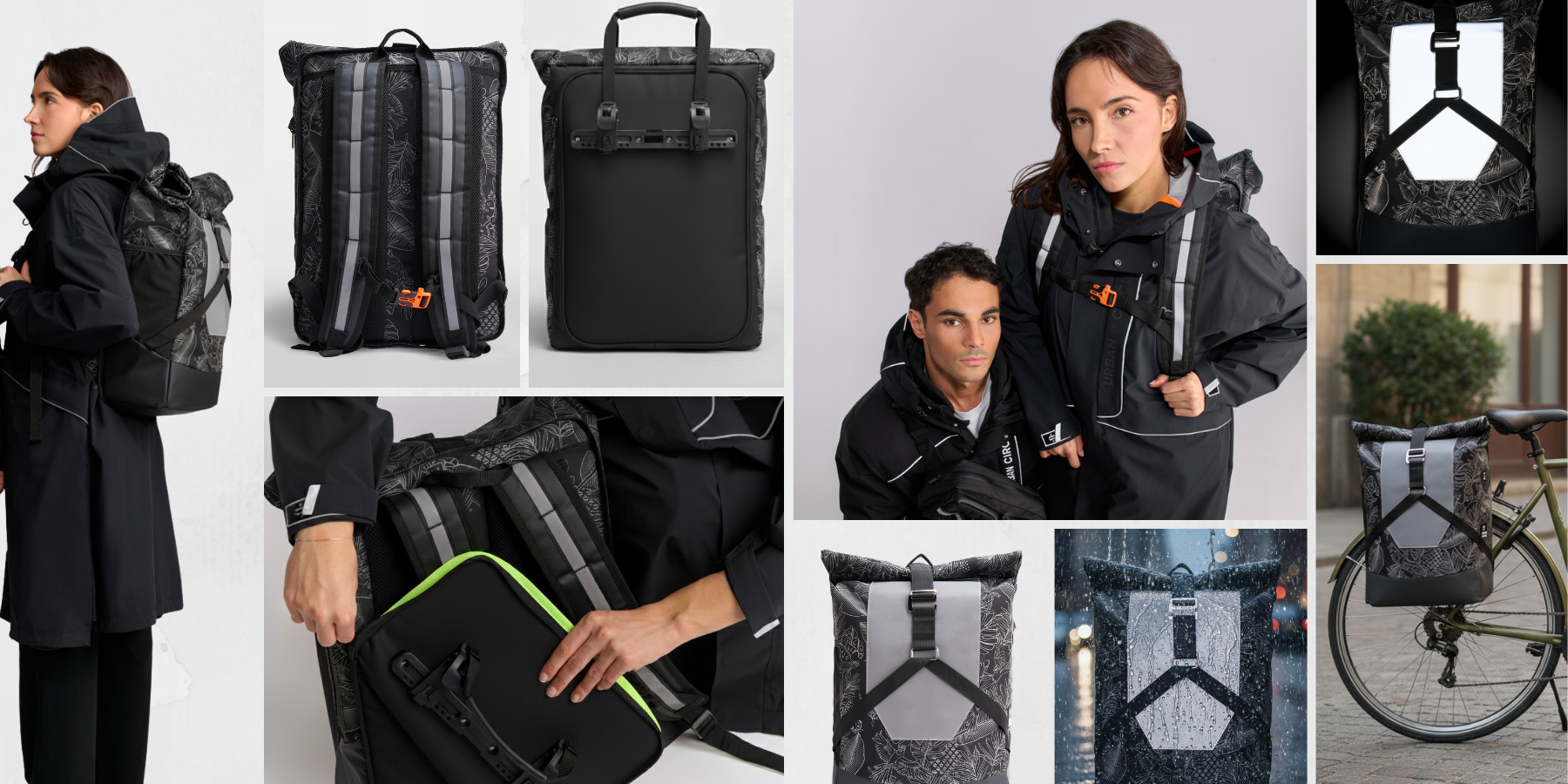 Nous privilégions la durabilité en utilisant des tissus recyclés comme le polyester post-consommation, pour rendre nos produits accessibles aux utilisateurs de mobilité douce tout en réduisant les déchets.
